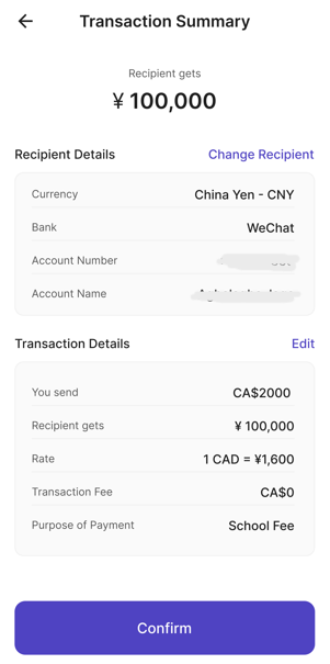 - Review the recipient details before confirming.
